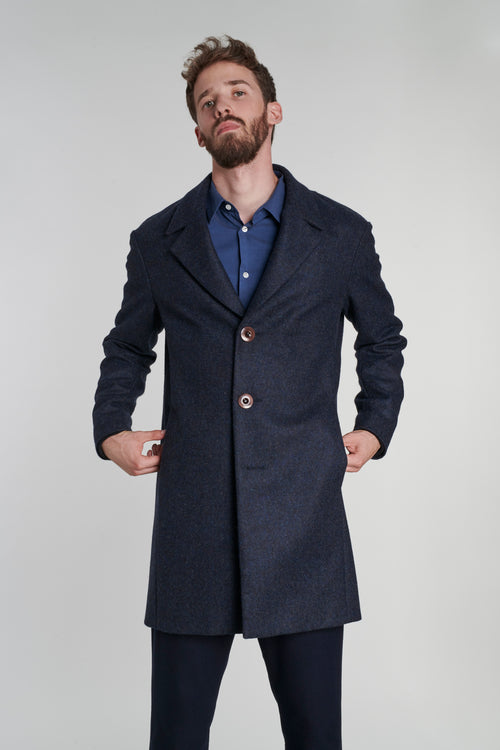 Cardigan in the Finest Italian Navy Blue Melange Lambs Wool
