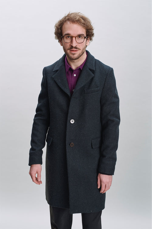 Snap Button Jacket in Navy Recycled Wool and Cotton with MEIDA