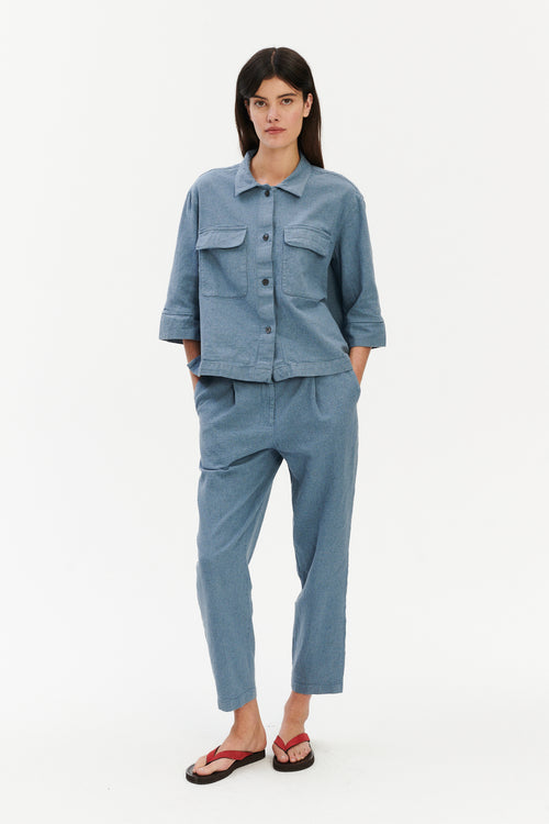 Amsterdam Trousers in a Steel Blue Subtle Firm Italian Organic Cotton Amsterdam Trousers in a Steel Blue Subtle Firm Italian Organic Cotton