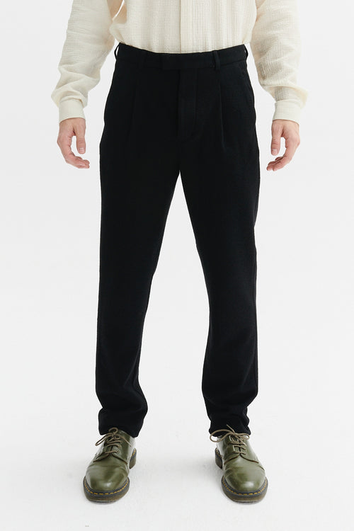 Bohemian Trousers in a Black Italian Virgin Wool and Cotton Seersucker Bohemian Trousers in a Black Italian Virgin Wool and Cotton Seersucker